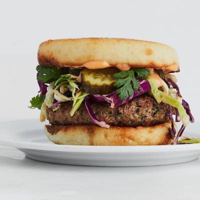Sesame Pork Burgers with Sweet and Spicy Slaw